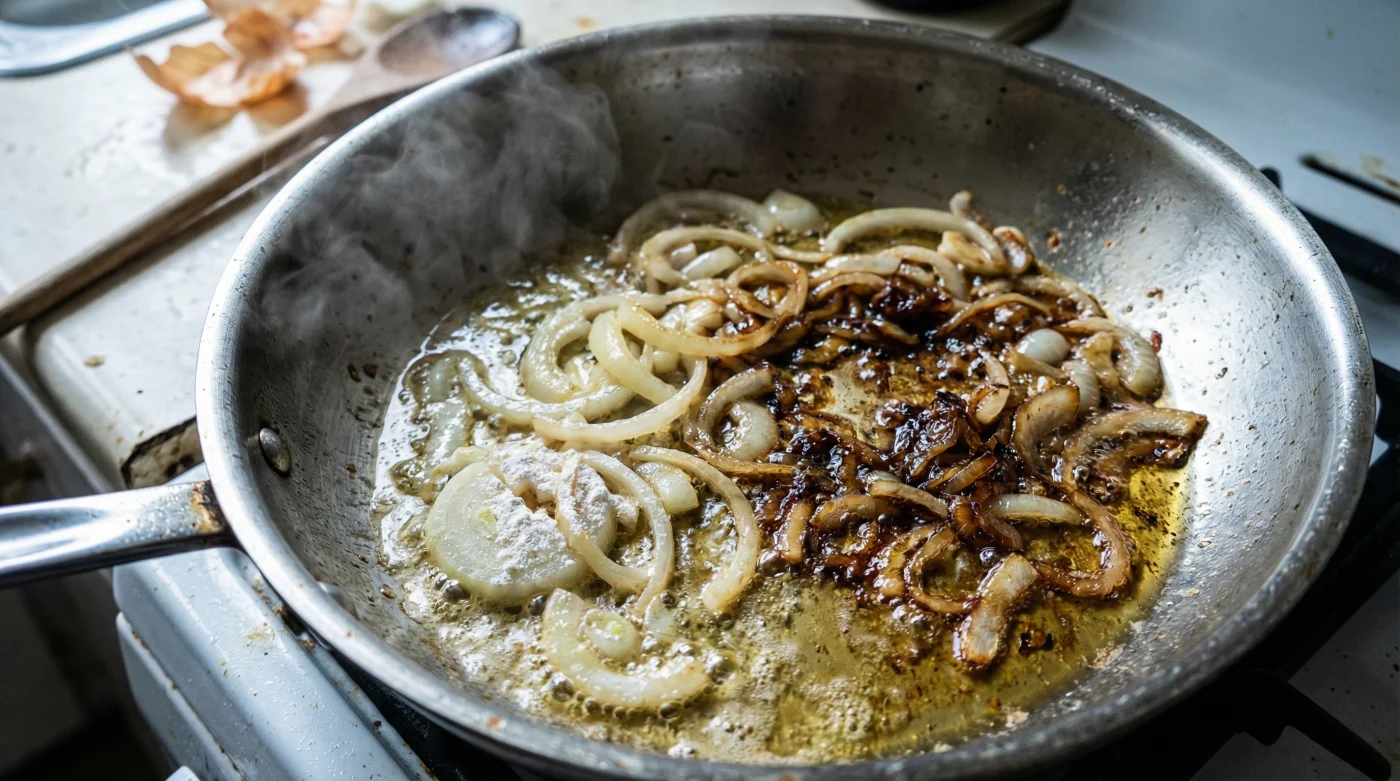 Löken har sin egen obönhörliga tyngdlag. Den vill ta sin tid, sakta släppa sin vätska och gradvis brytas ner. Det vi i dagligt tal kallar karamellisering av lök är i de flesta matlagningssammanhang egentligen Maillardreaktionen – den magiska process där aminosyror och sockerarter möts under värme och skapar hundratals nya, komplexa smakämnen. Denna process är av naturen långsam. Om du höjer värmen för att stressa fram resultatet, bränner du löken innan den hunnit bli mjuk. Resultatet blir en beskt smakande besvikelse som andas bränt kol snarare än söt fyllighet.