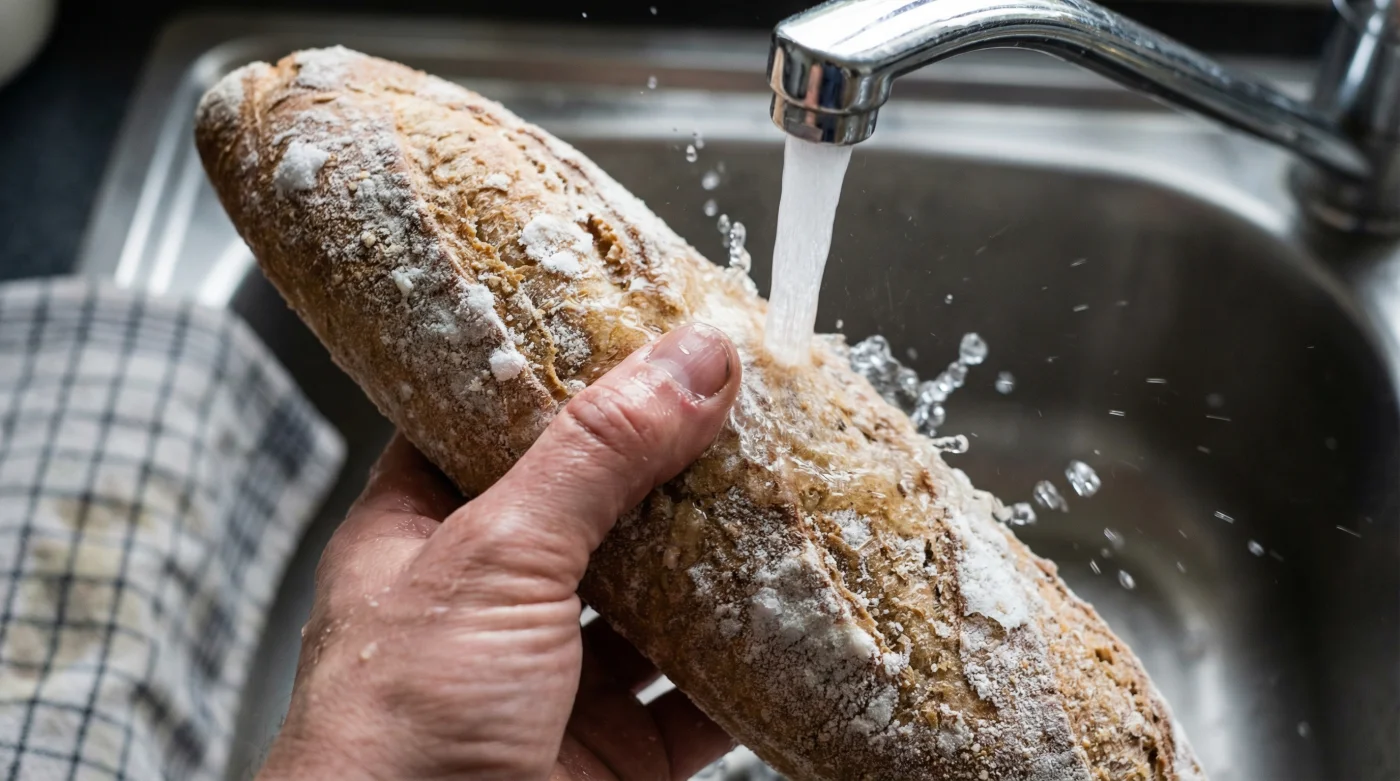 Lösningen är lika brutal som den är vacker: du måste spola det frysta brödet under kranen. Det handlar inte om att dränka det, utan om att ge ytan en snabb, iskall dusch. Vattnet agerar som en väckarklocka för vetet, och förbereder ytan för den magi som värmen snart ska erbjuda.