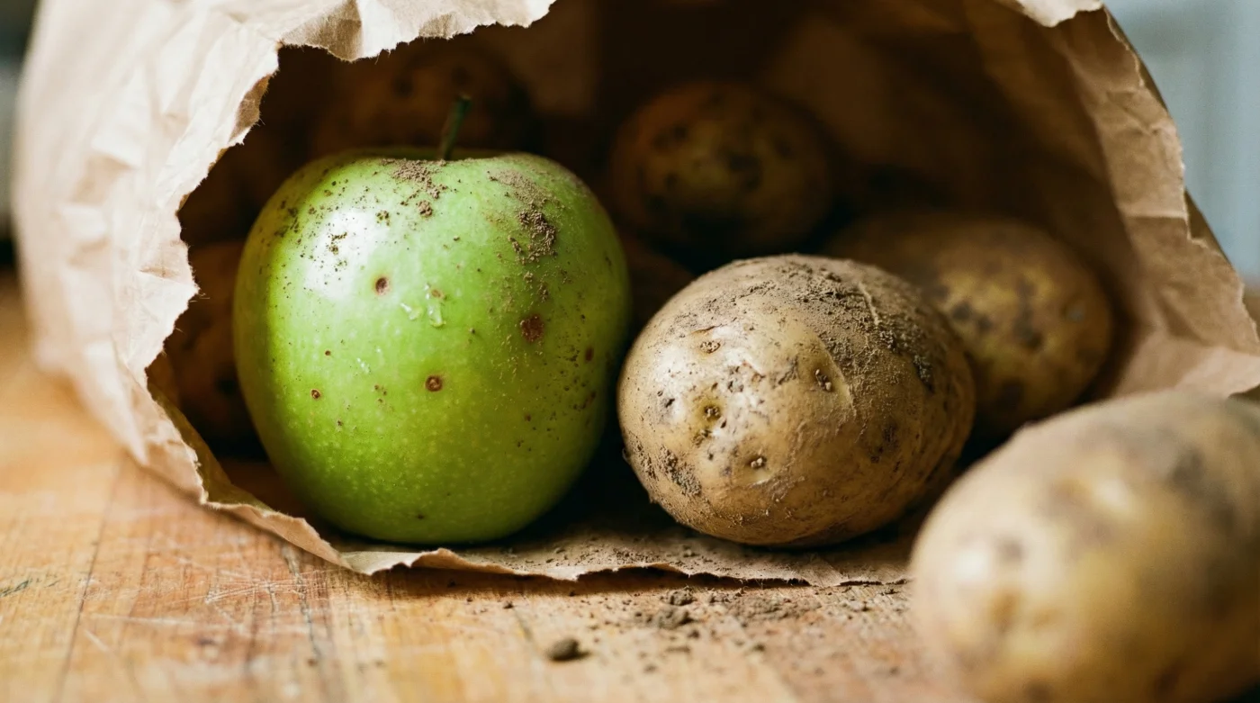 Du har med all säkerhet hört grundregeln från äldre generationer: håll frukt och rotfrukter långt ifrån varandra. Att blanda dem brukar resultera i en övermogen, mjuk massa. Tänk dig ditt skafferi som en stilla andning, där varje råvara har sin egen inre rytm. Om en andas ut för snabbt, dras de andra med i hetsen. Men mitt i denna allmänna sanning uppstår ett oväntat undantag, ett knep som vänder upp och ner på exakt allt du någonsin lärt dig om förvaring av våra mest älskade stapelvaror.