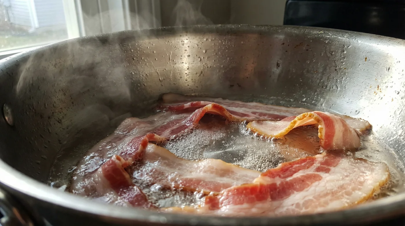 Vi har i alla tider fått lära oss att skivat bacon ska stekas i en torr, varm panna. Vissa menar till och med att pannan ska vara brännhet redan från start för att ‘chocka’ ytan. Men detta är ett genuint kulinariskt missförstånd som skapar mer problem än det löser. När du utsätter det kalla, fettrika köttet för omedelbar, torr värme, sluter sig muskeltrådarna i en kramp. Det är som att försöka värma upp en iskall bilmotor genom att omedelbart trampa gasen i botten. Köttet drar på sig en rustning av förhårdnat protein. Det inbäddade fettet hinner helt enkelt inte smälta ut ordentligt innan proteinet börjar brynas sönder, vilket resulterar i den där skeva, ojämna och ibland brända ytan.