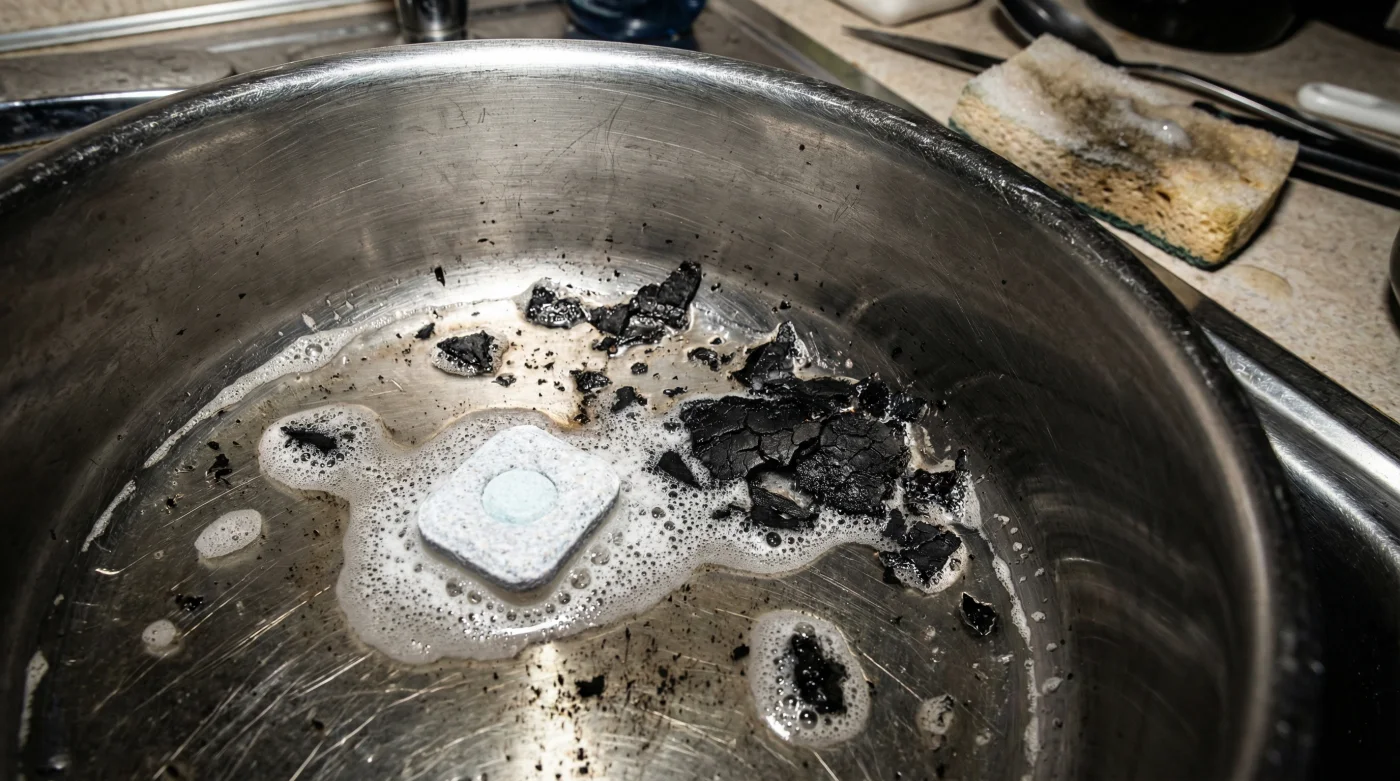 Men tänk om all den där fysiska ansträngningen är helt onödig? Den svarta, till synes ogenomträngliga kolmassan behöver inte tvingas bort med brutal muskelkraft. Många tror att friktion är det enda svaret när mat har förvandlats till kol, men sanningen är att du försöker lösa ett kemiskt problem med ett fysiskt verktyg.