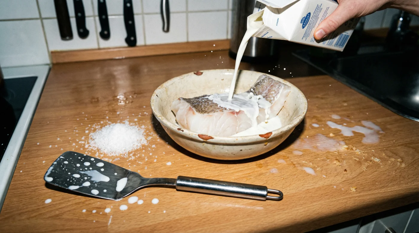 För den stressade vardagsmatlagaren: Tisdagstorsken från frysdisken, den som tinats lite för snabbt, behöver ofta allra mest kärlek. Lägg det lite frostiga blocket i en djup tallrik, slå generöst över vanlig mellanmjölk så att det precis täcker kanterna, och låt alltsammans stå framme på köksbänken i cirka tio minuter medan du fokuserat skalar potatisen och hackar dillen. Det är fullt tillräckligt med tid för att proteinerna ska agera och ge råvaran ytan att andas mot vätskan.