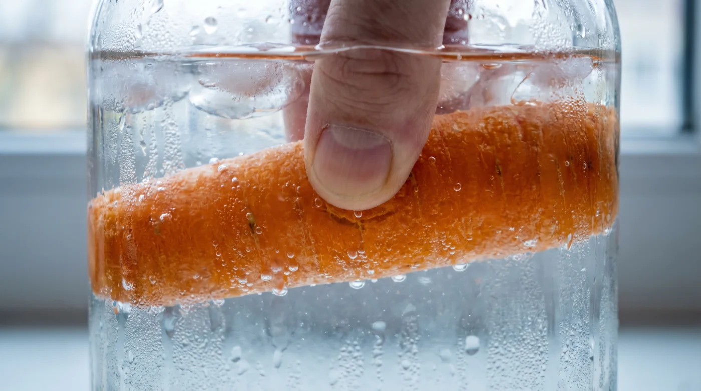 När du förbereder badet, var noga med att vattnet faktiskt är kallt, inte bara svalt från kranen. Kylan är avgörande för att cellerna ska strama åt och hålla kvar fukten. Om du slarvar med detta kommer moroten bara bli fuktig och mjuk. Du söker den där obarmhärtiga gränsen när vattnet biter i huden om du doppar fingrarna.