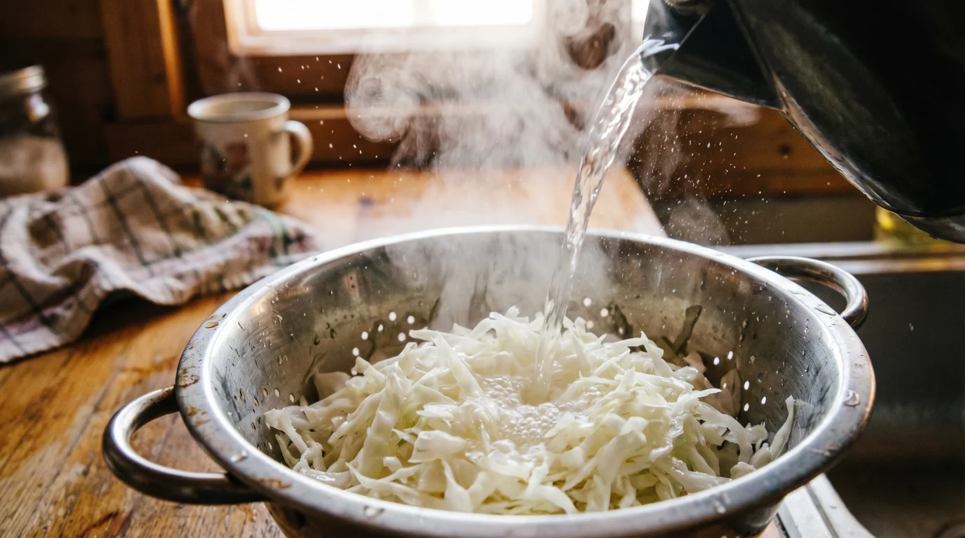 Många tror att syran i ättikan ska bryta ner kålen över tid. Det stämmer till viss del, men den processen tar flera dagar i kylskåp. Om du i stället låter skållhett vatten skölja över strimlorna, händer något fundamentalt. Den plötsliga värmen får cellväggarna att spricka upp på en mikroskopisk nivå. Kålen slappnar av. Den andas bokstavligen ut.