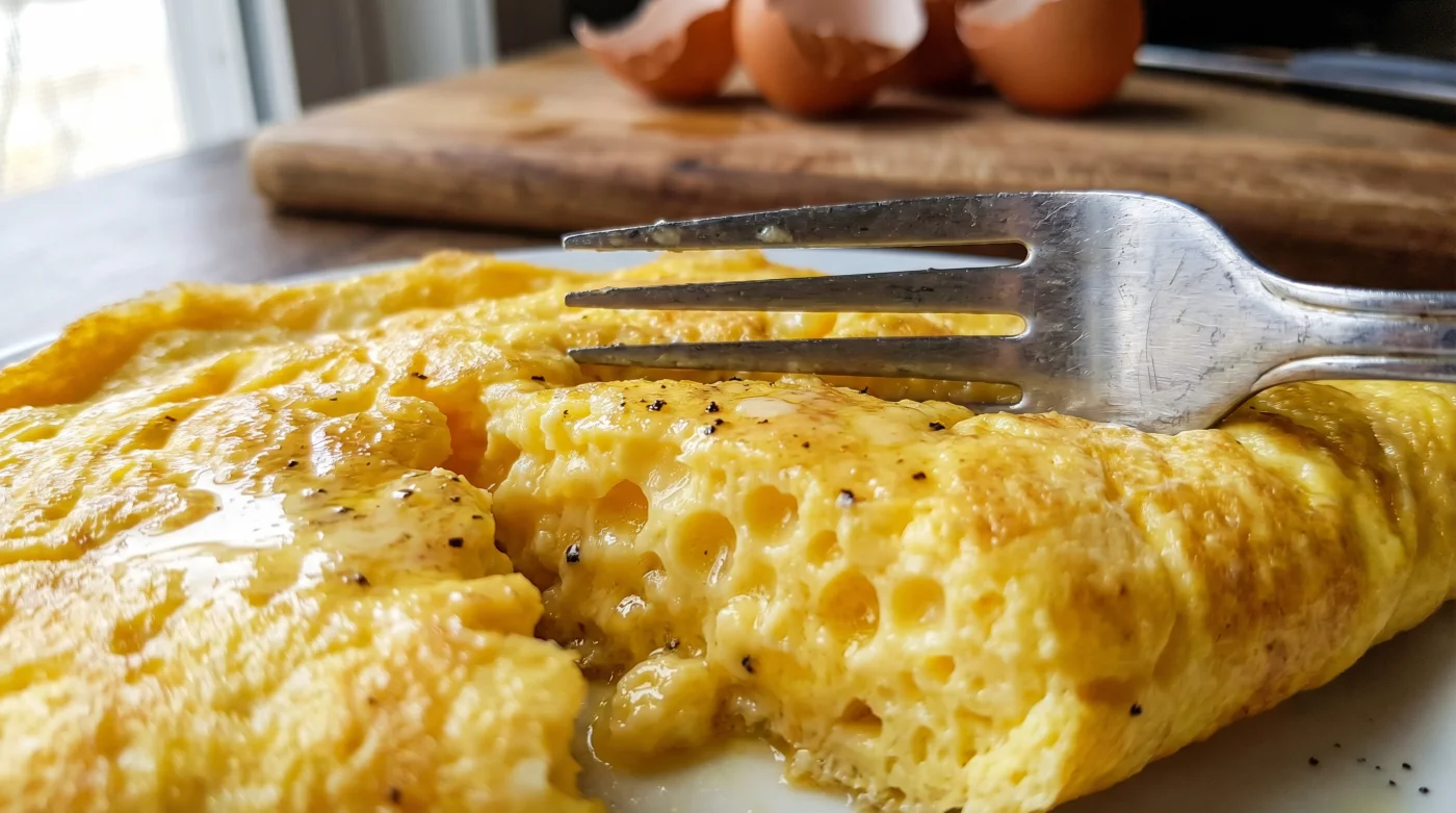 Men när maten väl glider ner på tallriken är magin plötsligt borta. Istället för ett svävande moln ligger där en platt, gummiaktig disk som dessutom släpper ifrån sig en ledsen liten vattenpöl. Den doftar visserligen stekt smör, men texturen påminner mer om en fuktig tvättsvamp än den fjäderlätta elegans du egentligen drömde om när du vaknade.