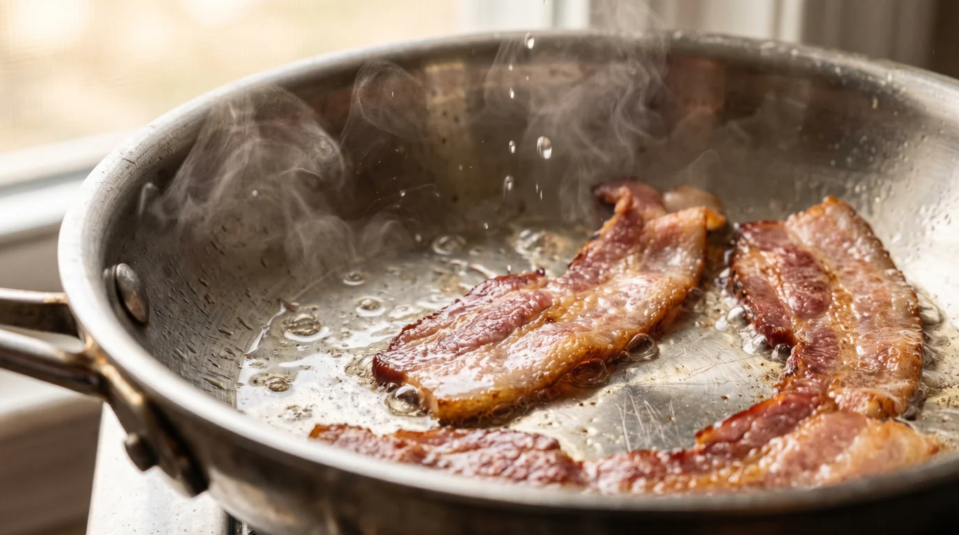 För att förstå varför köttet slår knut på sig självt och spottar ner din bänkskiva måste vi titta på vad som egentligen händer. Skivorna är fyllda av fukt och tätt packat fett. När de träffar en snustorr, brännhet yta drabbas de av en termisk chock. Vattnet i köttet förångas våldsamt innan fettet ens har hunnit smälta, vilket skapar de små oljiga projektilerna som attackerar dig.