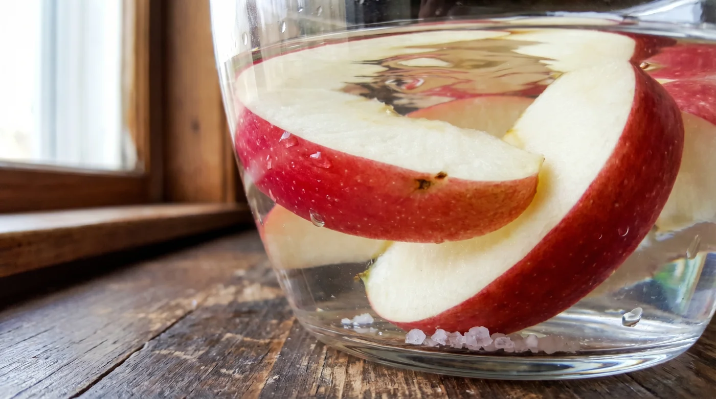 Salt, å andra sidan, agerar snarare som en varsam och lugnande filt över de uppskurna snitten. En väldigt svag saltlösning lägger sig mjukt över det blottade fruktköttet och bedövar reaktionen nästan omedelbart utan att stressa fibrerna. Det är en minimalistisk metod som inte på något sätt försöker överrösta äpplets egen subtila smak, utan som istället varsamt fryser tiden precis där kniven nyss vilade. Du manipulerar inte själva råvaran eller dess själ; du ber den bara artigt att pausa sitt eget åldrande en stund.
