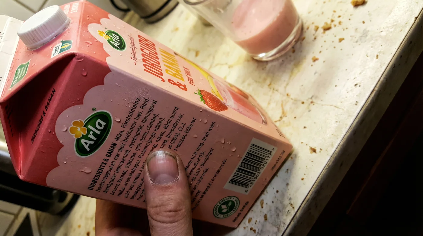 Det är den där tysta sekunden på morgonen när köket fortfarande andas natt. Du öppnar kylskåpet, känner det svala handtaget mot handflatan och lyfter ut den välbekanta rosa kartongen. Ljudet när botten träffar köksbänken är en trygg bekräftelse på att dagen är redo att börja. Du häller upp, och vätskan bryter den mörka kaffeytan i ett invant mönster.