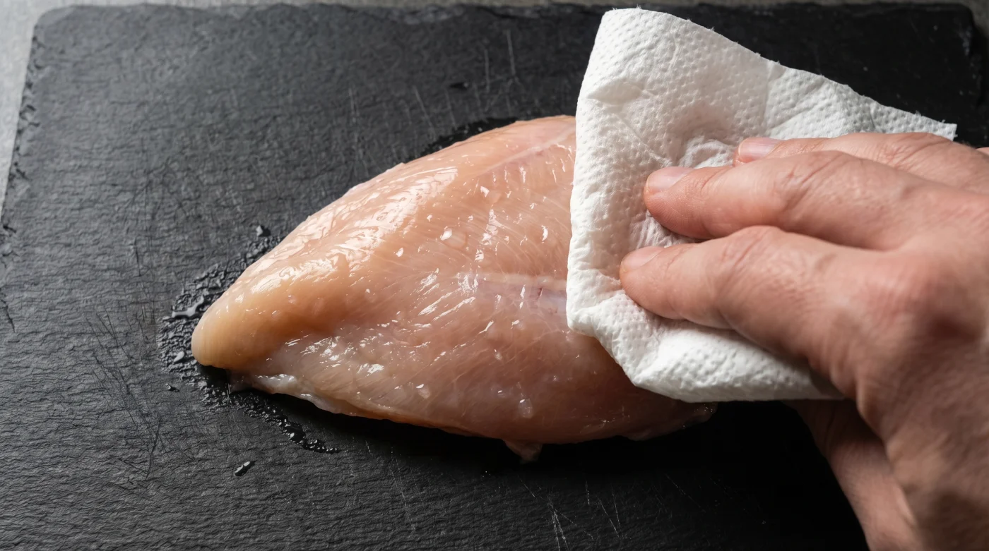 Att försöka steka ett blött kycklingbröst är som att försöka tända en eld med fuktig ved. Den initiala värmen från pannan går inte åt till att skapa färg eller smak. Den tvingas istället arbeta för att förånga det sista ytvattnet innan karamelliseringen ens kan börja.