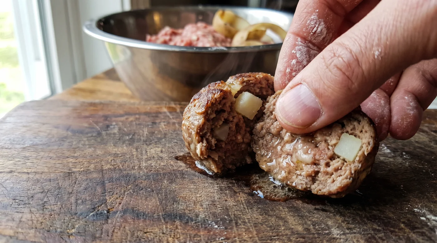 - Total nedkylning: Säkerställ att både köttet och potatisen är kylskåpskalla. Kroppsvärmen från dina händer är din största fiende, då den får fettet att smälta redan i bunken.