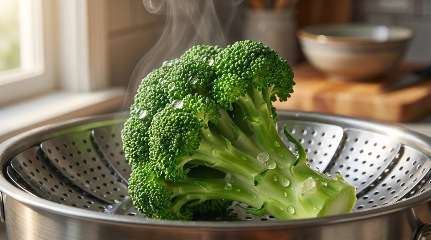 Lyft ut buketterna direkt i rumsluften för att bryta värmecykeln. Resultatet blir en broccoli som känns spänstig mellan tänderna, packad med en djup och vibrerande grön färg som behåller alla näringsämnen inuti sig istället för i kokvattnet.