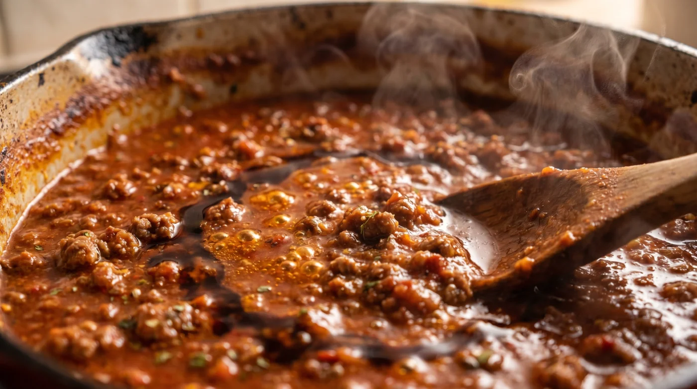 Använd exakt en tesked mörk soja per 500 gram nötfärs. Tillsätt den precis efter att köttet har fått en ordentlig stekyta, innan tomaterna går i. Låt den fästa minimalt för att aktivera karamelliseringen i pannans botten och omedelbart driva bort proteinets sista råhet.