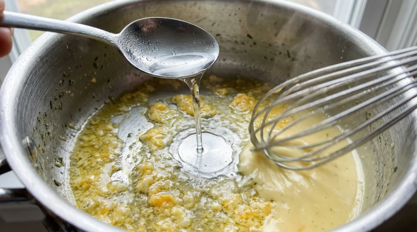Fysiken bakom detta knep är lika logisk som den är fascinerande. När du tillsätter den iskalla vätskan händer två saker nästan samtidigt i kastrullen. Först och främst sänker det kalla vattnet omedelbart temperaturen på själva äggulorna. Detta stoppar blixtsnabbt den överdrivna koaguleringen av proteinerna som fick såsen att spricka från första början. Du drar bokstavligen såsen tillbaka från avgrunden. För det andra tillför du en liten, men helt avgörande, mängd rent vatten. En emulsion spricker ofta helt enkelt för att fettet trängs på en för liten yta i förhållande till vattnet. Genom att addera en enda matsked vätska ger du fettmolekylerna exakt det fysiska utrymmet de behöver för att återigen spridas ut jämnt.