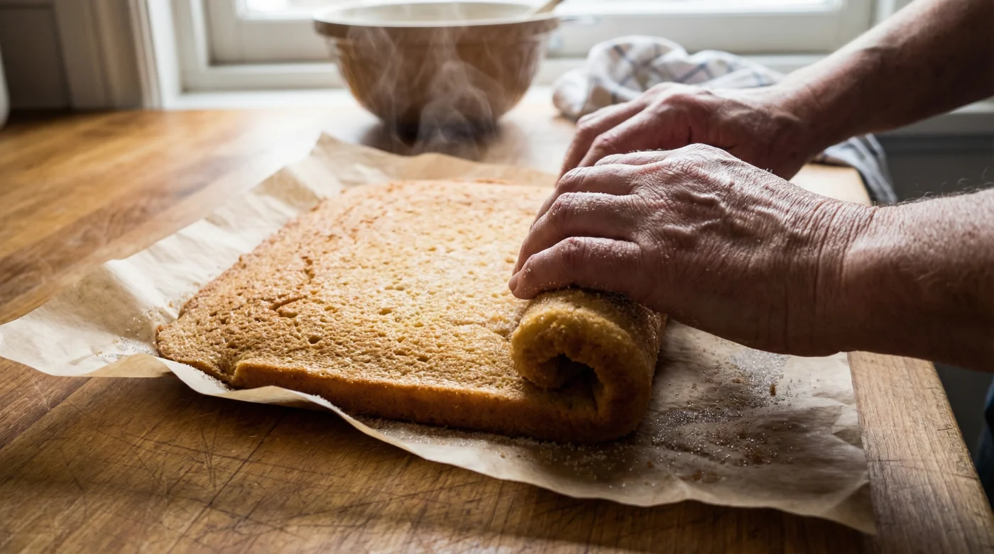 Kan jag använda en fuktig handduk istället för papper när jag rullar? Ja, många professionella bagare föredrar en ren, lätt fuktad och strösockrad kökshandduk för att rulla kakan. Handduken bevarar fukten effektivt under avsvalningsfasen.