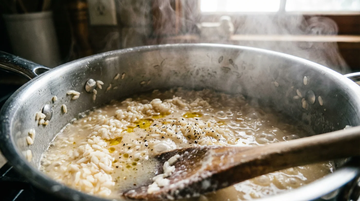 Jag minns en sen kväll i ett litet restaurangkök i Göteborg, där jag lärde mig hantverket av en kock som tillbringat halva sitt liv framför varma spisar i norra Italien. Han såg mig sträcka handen mot en kall kanna kycklingfond och slog mig lätt på fingrarna med en träslev. En risotto är en konversation, sa han med låg röst. Du skriker inte åt den med isvatten. Du håller den sällskap med något som är lika varmt som den själv.