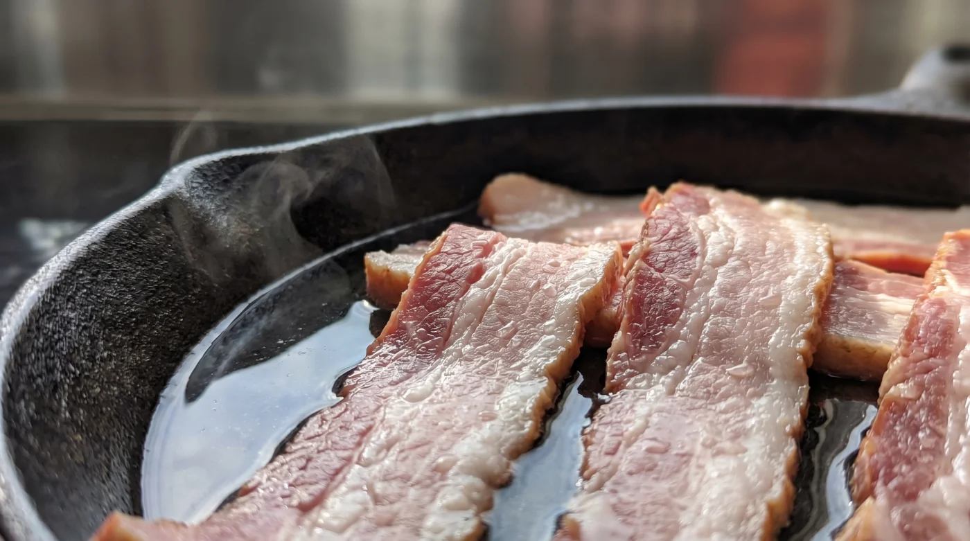 Blir inte baconet kokt istället för stekt?