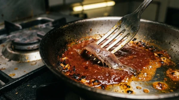 Steg 1: Kall panna. Lägg bräckorna i ett kallt gjutjärn och dra på medelvärme. Låt fettet smälta ur i lugn och ro. Steg 2: Spara fettet. Lyft ur köttet när det är krispigt. Låt den salta stekskyn stanna kvar på botten av pannan. Steg 3: Värmen. Lägg i smöret. Det börjar omedelbart skumma aggressivt. Steg 4: Krogenstipset. Bistro-veteranen Stefan Nilsson poängterar vikten av att aldrig sluta vispa med en träslev. När doften skiftar från varm mjölk till knäck och skummet plötsligt sjunker undan, dra direkt av från plattan. Steg 5: Temperaturstoppet. Droppa i exakt en tesked kallt vatten för att sänka värmen snabbt, och slå sedan den nötiga såsen direkt över fläsket.