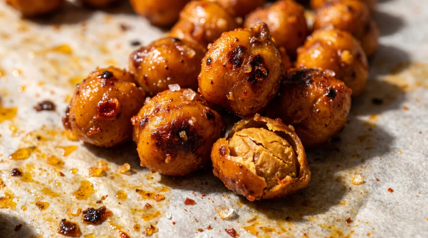 Kikärtsspadet fungerar nämligen som ett potent mekaniskt lim. Vätskan i konservburken är mättad med urlakade proteiner och långa stärkelsekedjor. När dessa proteiner utsätts för den plötsliga hettan vid 200 grader Celsius koagulerar de blixtsnabbt runt varje enskild ärta likt ett tätt nätverk. Fukten dunstar undan aggressivt, och kvar blir ett tjockt, pansarliknande skal där kryddorna har smält in i själva ytan istället för att bara ligga löst ovanpå. Resultatet är ett snack för under tjugo kronor som utklassar färdiga potatischips.