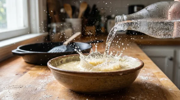 3. Aktivera vätskelåset: Sikta ner exakt en matsked majsstärkelse i den iskalla gräddblandningen. Vispa kraftigt med en ballongvisp i trettio sekunder tills pulvret är helt dispergerat.