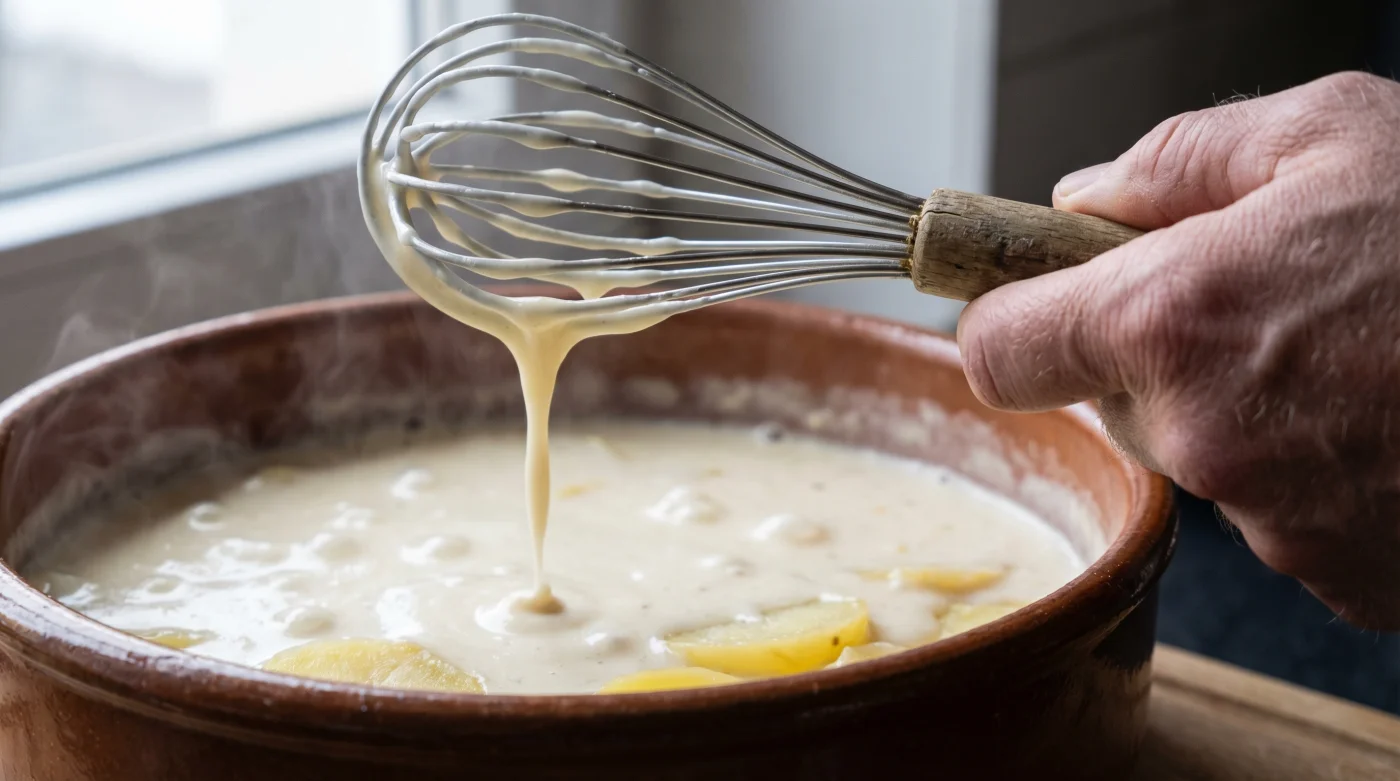 För traditionalisten som kräver maximal umami, byt ut den vanliga mjölken mot en reducerad, osaltad kycklingfond. Detta ger en mörkare, mer rustik grundton som tål tyngre kötträtter. Om du däremot befinner dig under extrem tidspress, finns en genväg. Koka upp grädden, mjölken och majsstärkelsen i en vid kastrull först. Vispa konstant tills vätskan tjocknar. Vänd ner potatisskivorna direkt i kastrullen, låt allt sjuda i åtta minuter, häll över i en form och bränn av osten under grillfunktionen i ugnen.