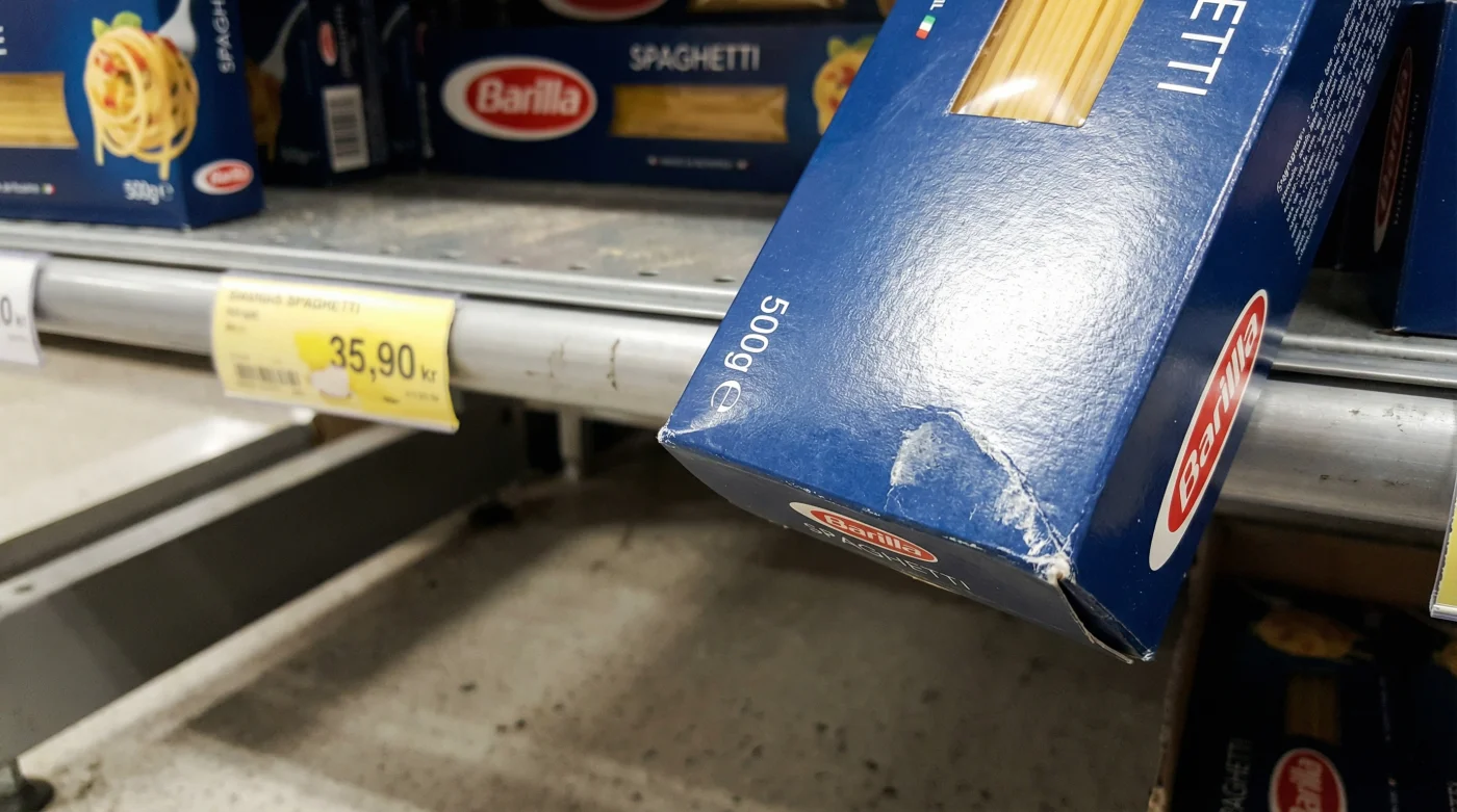 Du känner igen ljudet. Det torra, raspiga prasslet när du plockar upp den klassiska mörkblå kartongen från hyllan. Lysrören brummar svagt ovanför dig i butiksgången. Du väger Barilla-spagettin i handen under det kalla ljuset. Något stämmer inte riktigt. Det är en subtil förändring. En liten förskjutning i tyngdkraften. Prislappen på hyllkanten visar dock fortfarande exakt samma siffra som förra månaden: 24:90 kronor. Du lägger tryggt ner paketet i korgen och styr kundvagnen vidare mot de krossade tomaterna, helt ovetande om att din stundande tisdagsmiddag precis har blivit markant dyrare per tugga.