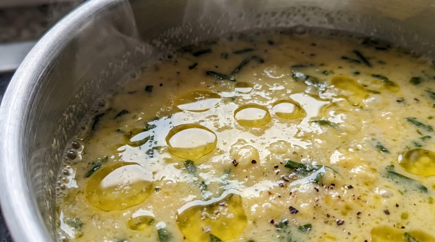 Exakt vid 60 grader Celsius förvandlas din klassiska bearnaisesås från en silkeslen triumf till en oljig, grynig pöl i botten av kastrullen. Doften av dragon och vitvinsvinäger hänger tung i köket, men ljudet från vispen har plötsligt förändrats från ett dovt, fluffigt rassel till ett skarpt, plaskande stänk mot metallen. Du ser fettet separera från äggulorna framför dina ögon. Det är en smärtsamt snabb kemisk kollaps. Att stormkoka smöret, ett misstag som många hemmakockar stressar igenom, är det säkraste sättet att döda emulsionen innan den ens fått chansen att stabiliseras. Det härdade mjölkproteinet skrynklar ihop sig och vägrar binda vätskan, vilket lämnar dig med en dyr, fet soppa.