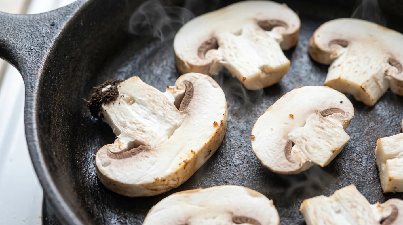 - Maximera ytan: Värm en gjutjärnspanna tills den ryker lätt. Lägg i svampen i ett enda lager. Överfyll inte pannan – ligger de på varandra skapas ånga som stänger inne fukten.