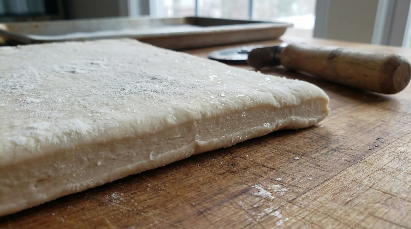 Att skära smördeg handlar om att förstå dess mikroskopiska mekanik. Tänk dig degen som en mycket gammal bok med hundratals tunna, ömtåliga papperssidor. Mellan varje sida ligger en mikroskopisk hinna av smör. Det är detta smör som, när det hettas upp, skapar ånga och trycker isär lagren. Om du drar ett rullande hjul över dessa sidor skär du inte – du trycker ihop dem. Du limmar igen boken.