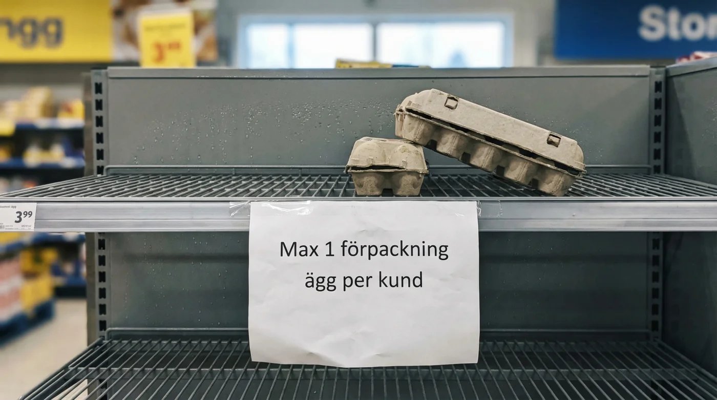 - Svenska ägg ransoneras kraftigt i matbutikerna efter nya larm om muterad fågelinfluensa.