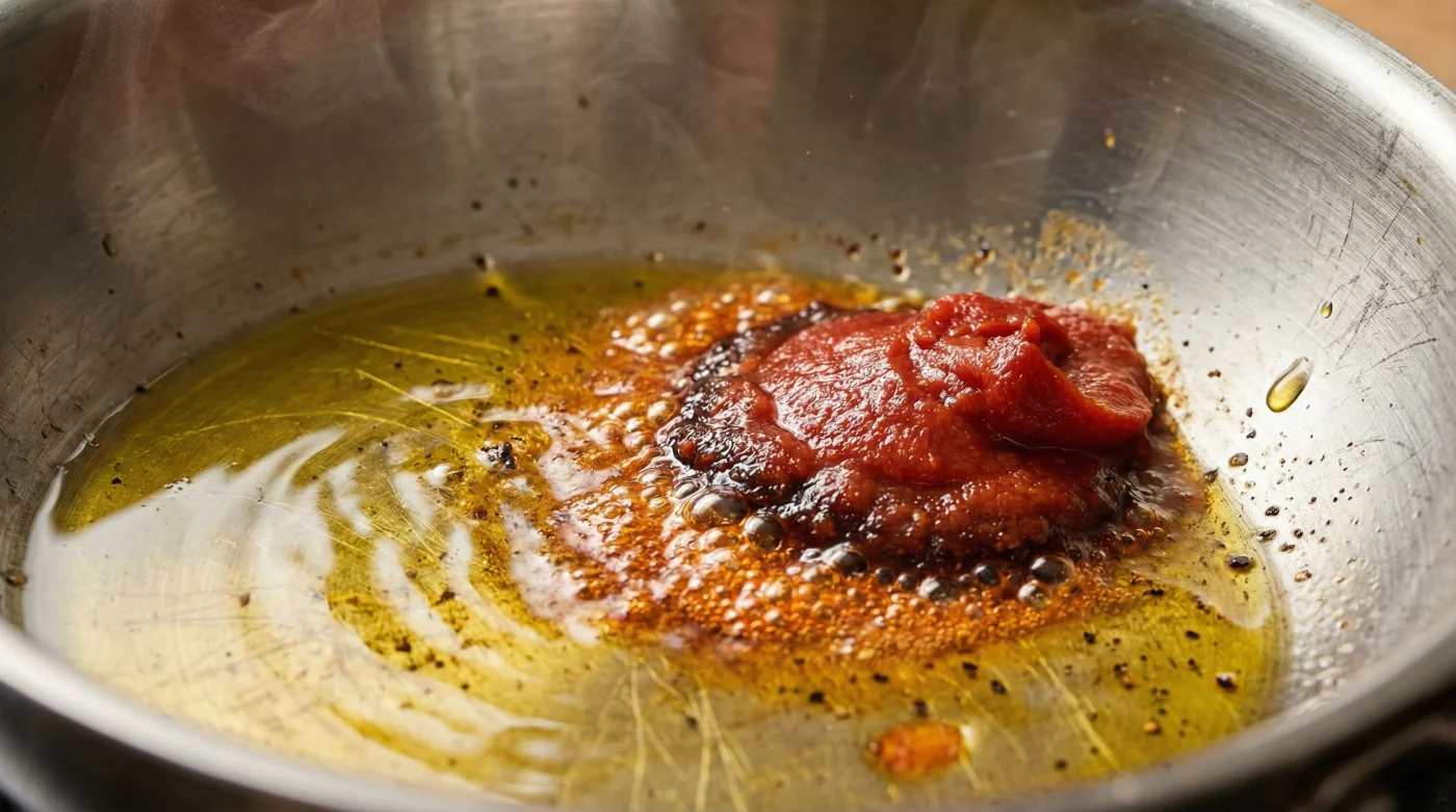 När du låter purén möta botten av en varm stekpanna, omfamnad av olivolja eller smör, påbörjar du en kemisk dialog mellan ingredienserna. Det är här den verkliga förvandlingen sker i ditt kök. Den råa, metalliska smaken från tuben förångas bokstavligen, och ersätts av en djupröd, karamelliserad umami som lyfter och bär varje annan ingrediens i kastrullen. Det är skillnaden mellan en platt sås och en som sjunger.