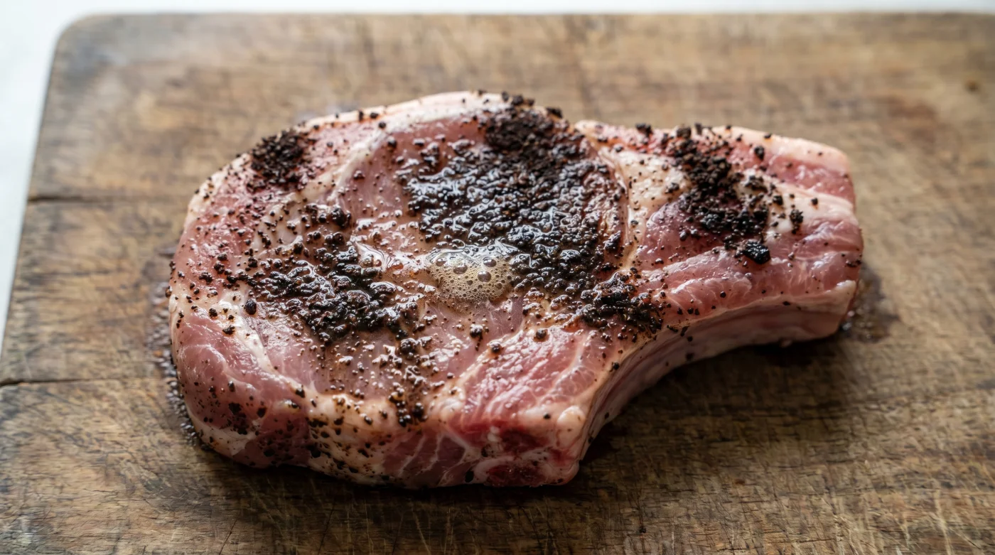 Standardmetoden för att hantera en tjock kotlett innebär ofta överdriven bankning med köttyxa eller marinader dränkta i grovsalt, vilket snarare torkar ut fibrerna än skyddar dem. Tänk dig muskeltrådarna som hårt tvinnade rep av fuktighet. När du kastar in köttet i en 200-gradig stekpanna, drar repen ihop sig i ren panik och pressar ut varenda droppe vätska på nolltid. Kaffesyran fungerar här som en kemisk massör; den klipper försiktigt upp de yttersta trådarna utan att skada den inre kärnan. Sumpen sänker köttets pH-värde marginellt, vilket tvingar proteinerna att bilda en skyddande gel istället för att dra ihop sig till torrt gummi. Den finkorniga texturen ger dessutom en mikroskopisk ytskrovlighet som är direkt avgörande för en snabb karamelliserad yta.