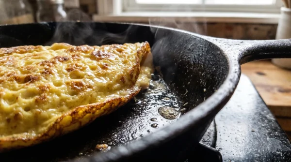 - Hemlagad omelett bränner fast oundvikligen i pannan vid för kraftig vispning