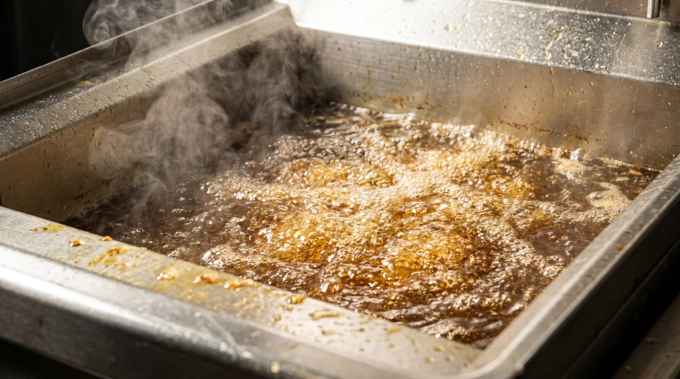 Men när oljan utsätts för stress – i form av extrem värme, avfallande stärkelse och salt – börjar den förlora sin spänst. Den oxiderar. Oljan går från att vara en sköld till att bli en fiende. Den blir trögflytande, trött och börjar sippra in i matens fibrer istället för att steka dess yta. Detta var exakt det gästerna upplevde. Maskinerna gick på högvarv, men systemets faktiska smärtgräns var nådd och passerad sedan länge.