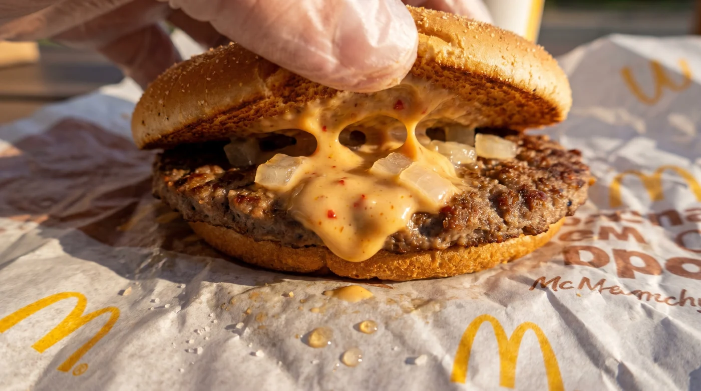 Men idag möts du av något högst ovanligt inne i värmen. De stora digitala beställningsskärmarna flimrar till och visar ett abrupt meddelande över nästan hela skärmytan. En tung, svart grafisk ruta döljer den absolut mest beställda storsäljaren på hela menyn. Det är aningen tystare än vanligt bakom de rostfria diskarna; den invanda rytmen har brutits och kunderna står tvekande med fingrarna svävande tätt över touchskärmarna.