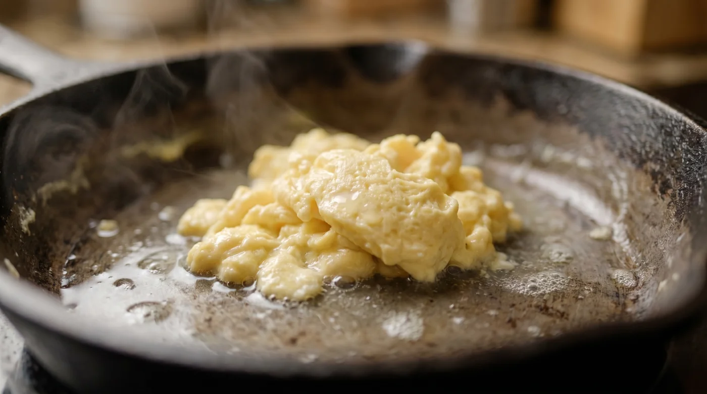 Värmen pressar bokstavligen ut mjölken ur äggen. Det är därför din frukost börjar gråta på tallriken och proteinet blir torrt. Lösningen är inte att ändra temperatur, utan att våga lita på att ägget är komplett från början.