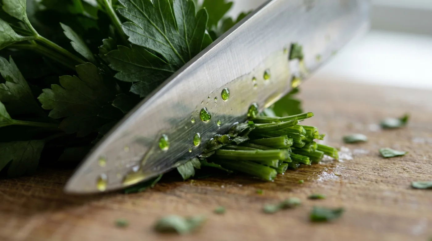 Ljudet av stål mot trä är bekant. Doften av klorofyll och fuktig skog sprider sig i köket när färsk persilja möter knivens egg. Du har förmodligen stått exakt här hundratals gånger. Pannan puttrar, köttet vilar och det enda som saknas är den där sista, visuellt avgörande touchen. Du samlar ihop en grönskimrande bukett, greppar din favoritkniv och börjar hacka med snabba, jämna rörelser.