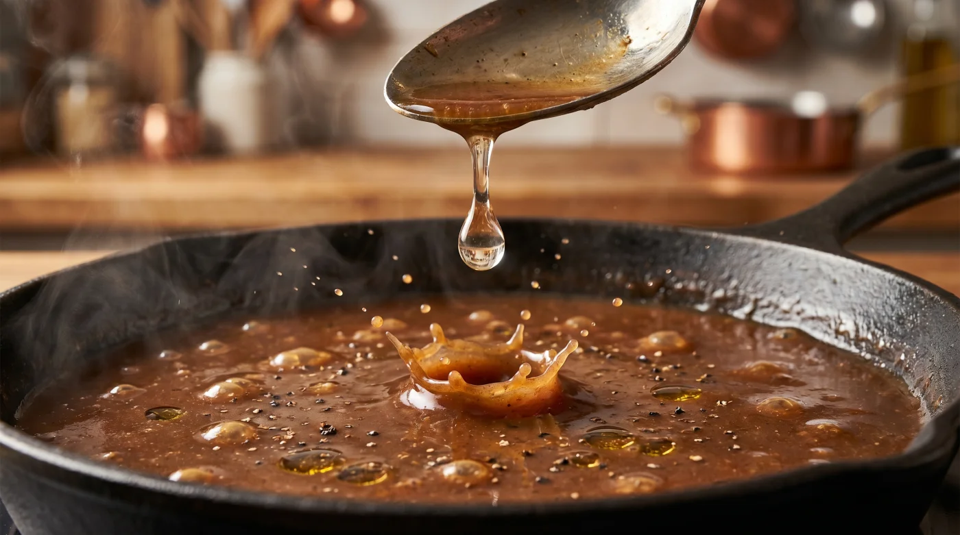 Taktisk Verktygslåda: Den optimala serveringstemperaturen för en brunsås är exakt 65°C. Det enda verktyg du egentligen behöver är en bra spiralvisp i rostfritt stål, undvik mjuk silikon då den inte slår sönder fettmolekylerna tillräckligt aggressivt. Måttsättningen är din viktigaste lag: max två teskedar spad per halvliter. Tillsätter du mer än så bryts illusionen, och tricket avslöjas.