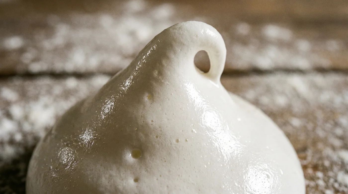 När du sedan börjar bearbeta den rumsvarma, åldrade vitan, låt maskinen gå på en balanserad medelhastighet hela tiden. Stressa aldrig in luften i blandningen. Målet är att skummet ska darra tillitsfullt när du försiktigt lyfter upp vispen från botten, det ska absolut inte stå rakt upp i luften som en styv och livlös kartongbit.