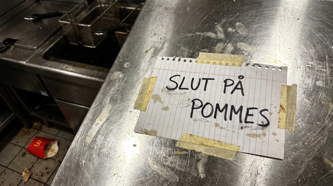 I stället möts du av små, handskrivna lappar vid kassorna och en märklig stillhet bakom disken. En av de massiva industriella maskinerna har tystnat, och illusionen av oändlig tillgång bryts i samma sekund. McDonalds pommes frites, den kanske mest ikoniska symbolen för obegränsad snabbmat, har plötsligt blivit en bristvara på grund av ett haveri.