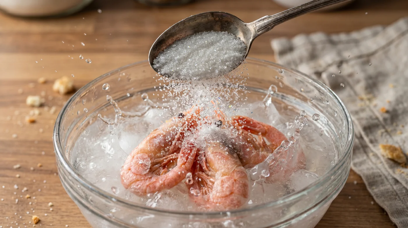 Tänk på en fryst räka som en liten, extremt känslig svamp som har gått i dvala. När cellerna fryser under tryck förändras deras mikroskopiska strukturer inifrån. När du sedan badar dem i vanligt, oskyddat kranvatten uppstår en osynlig men förödande flykt av smaker. Vattnet tränger rakt in i det sköra köttet, och drar hänsynslöst med sig skaldjurets naturliga sötma och sälta rakt ner i slasken.