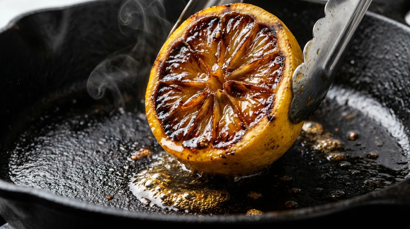 I det professionella köket sker något helt annat. Där får citrusfrukten sällan möta en exklusiv råvara i sitt råa, oborstade tillstånd. Istället ligger halvorna med snittytan nedåt i en het, torr panna tills de antar en djup, karamelliserad nyans som nästan påminner om bränt socker. Saften inuti börjar koka lätt och frukten mjuknar tills den känns som att andas genom en kudde.