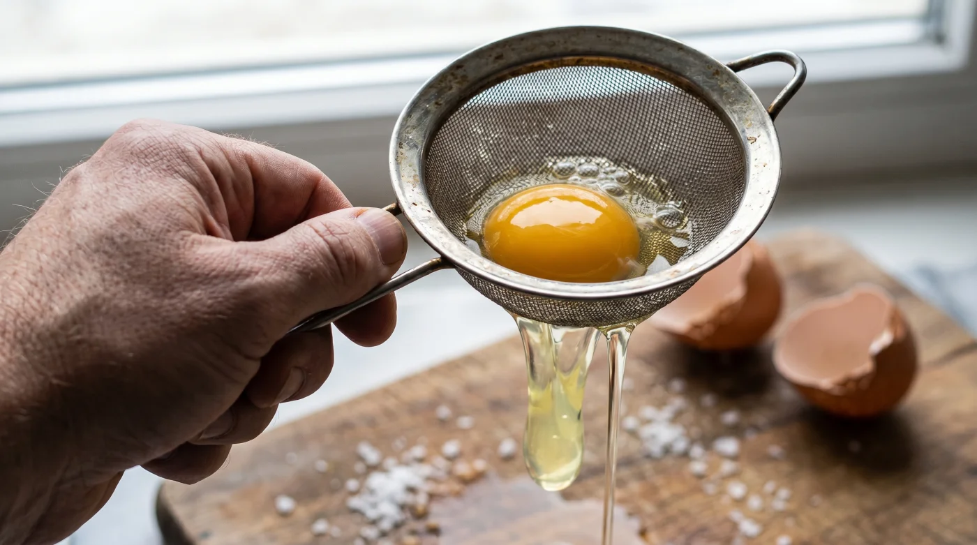 När du skiftar hela ditt perspektiv från att desperat försöka tvinga ihop vitan nere i det heta vattnet, till att helt enkelt ta bort det underliggande problemet innan ägget ens landar i kastrullen, förändras allt. Att sila bort den rinniga vitan garanterar perfekta runda ägg varje gång.
