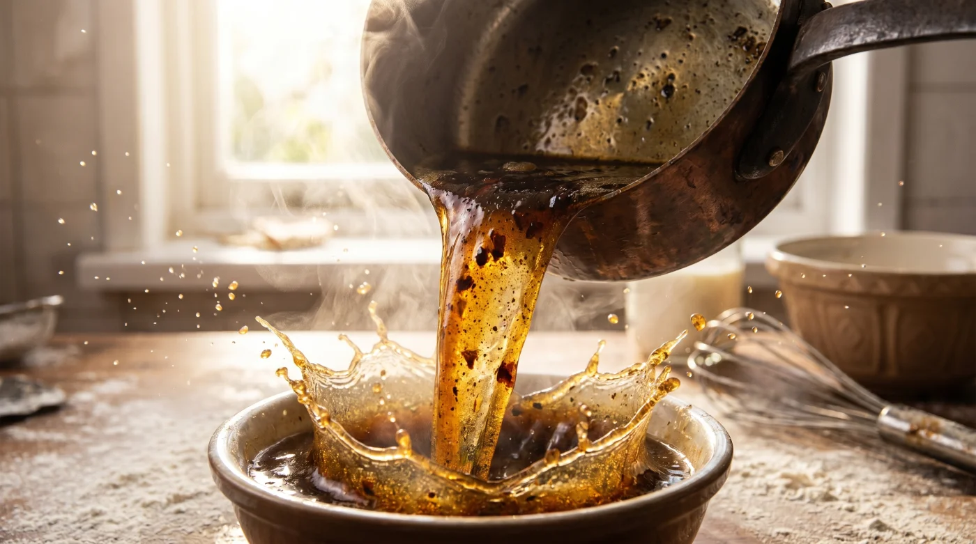 När du hettar upp smöret i en kastrull och vattnet börjar förångas, sker en fantastisk reaktion. Värmen får mjölkproteinerna att rostas och karamelliseras i botten av pannan. Det är den berömda Maillardreaktionen som äger rum precis framför dina ögon. Smöret övergår från att vara en neutral vätska till att dofta som en blandning av rostade hasselnötter, kola och varm bärnsten.