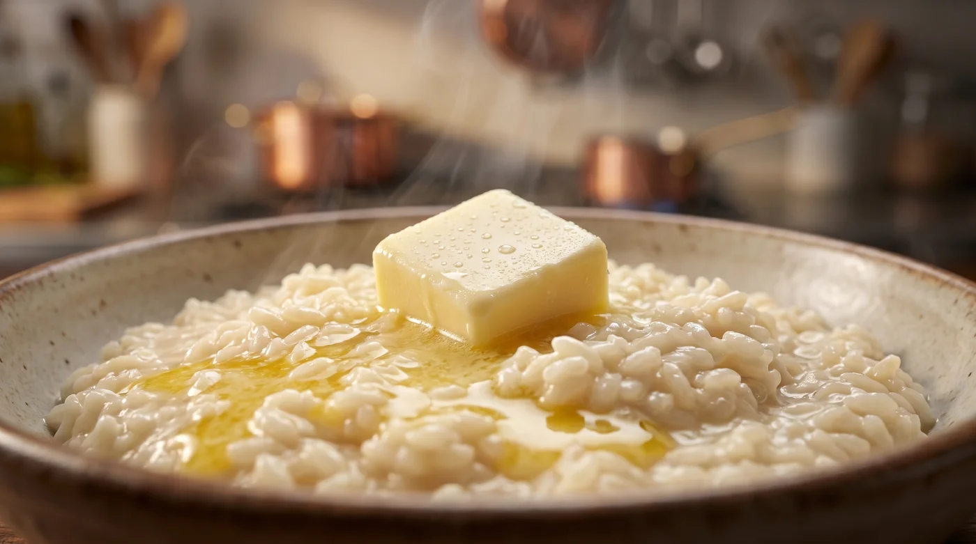 Just där, när den sista sleven vätska har absorberats och klockan närmar sig tjugo minuter, gör de allra flesta det ödesdigra men ytterst förståeliga misstaget. De tar en rejäl klick rumstempererat smör, ibland till och med direkt från smörbyttan på bänken, och rör ner det rakt ner i den fortfarande kokande grytan i tron att det ska smälta in mjukt.
