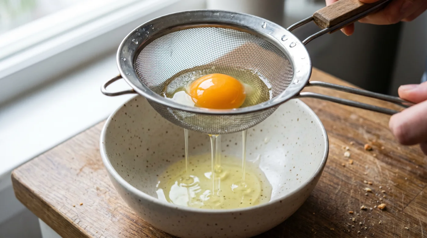 Detta beror på råvarans inbyggda klocka. När ett ägg är helt nylagt är vitan stram och håller ihop perfekt. Men ju fler dagar som går, desto mer bryts den fasta vitan ner och övergår i en vattnig form. Att använda en sil är i praktiken som att vrida tillbaka tiden; du skalar bort åldrandet och tvingar ett äldre ägg att bete sig exakt som om det vore hämtat från hönshuset samma morgon.