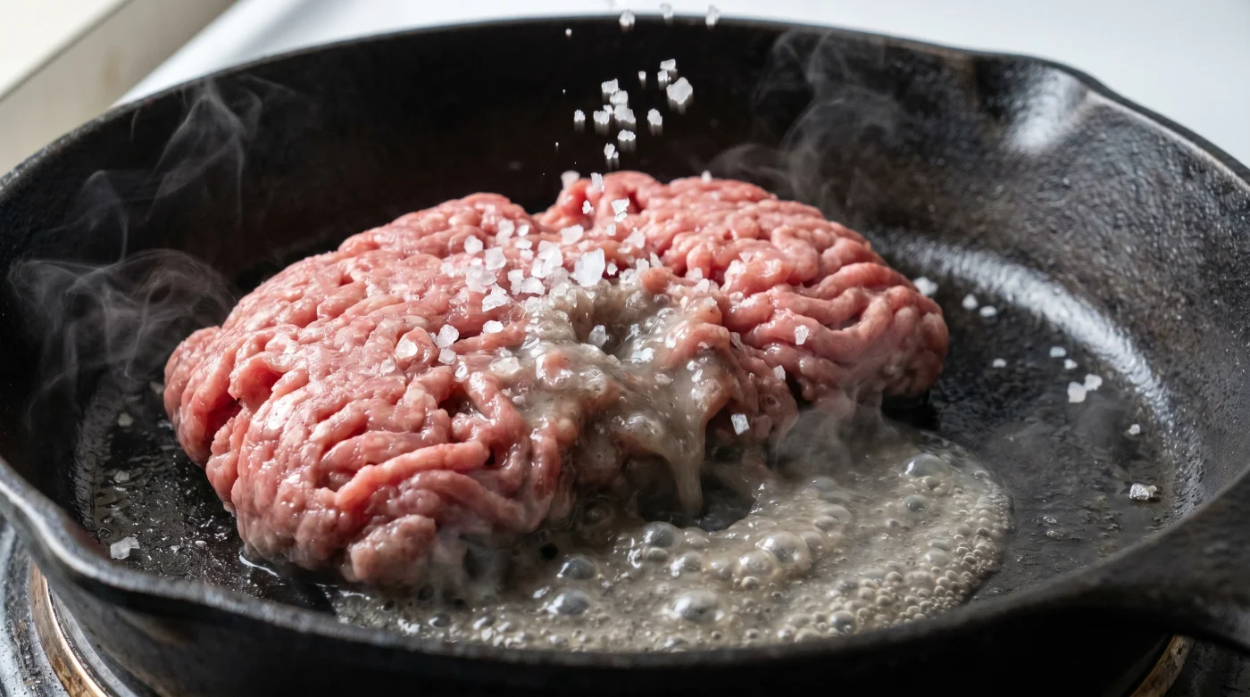 - Temperera råvaran: Låt köttfärsen vila i rumstemperatur tjugo minuter innan stekning. Iskallt kött sänker omedelbart pannans temperatur, vilket tvingar fram vätska oavsett när du saltar.