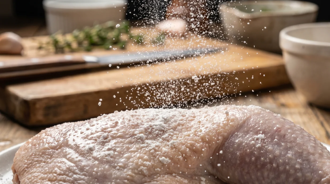 Men tänk om det inte alls handlar om att ge råvaran mer tid? Sanningen är att du har kämpat mot fysiska lagar i stället för att använda dem till din fördel. Den blöta hinnan på kycklingskinnet är en envis barriär som hindrar värmen från att göra sitt jobb. Att torka ytan med papper hjälper visserligen marginellt, men fukten inifrån köttet fortsätter obevekligt att förstöra krispet under hela tillagningen.