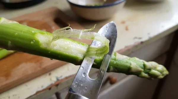 - Färsk sparris tappar all sin träighet när stjälkarna skalas först