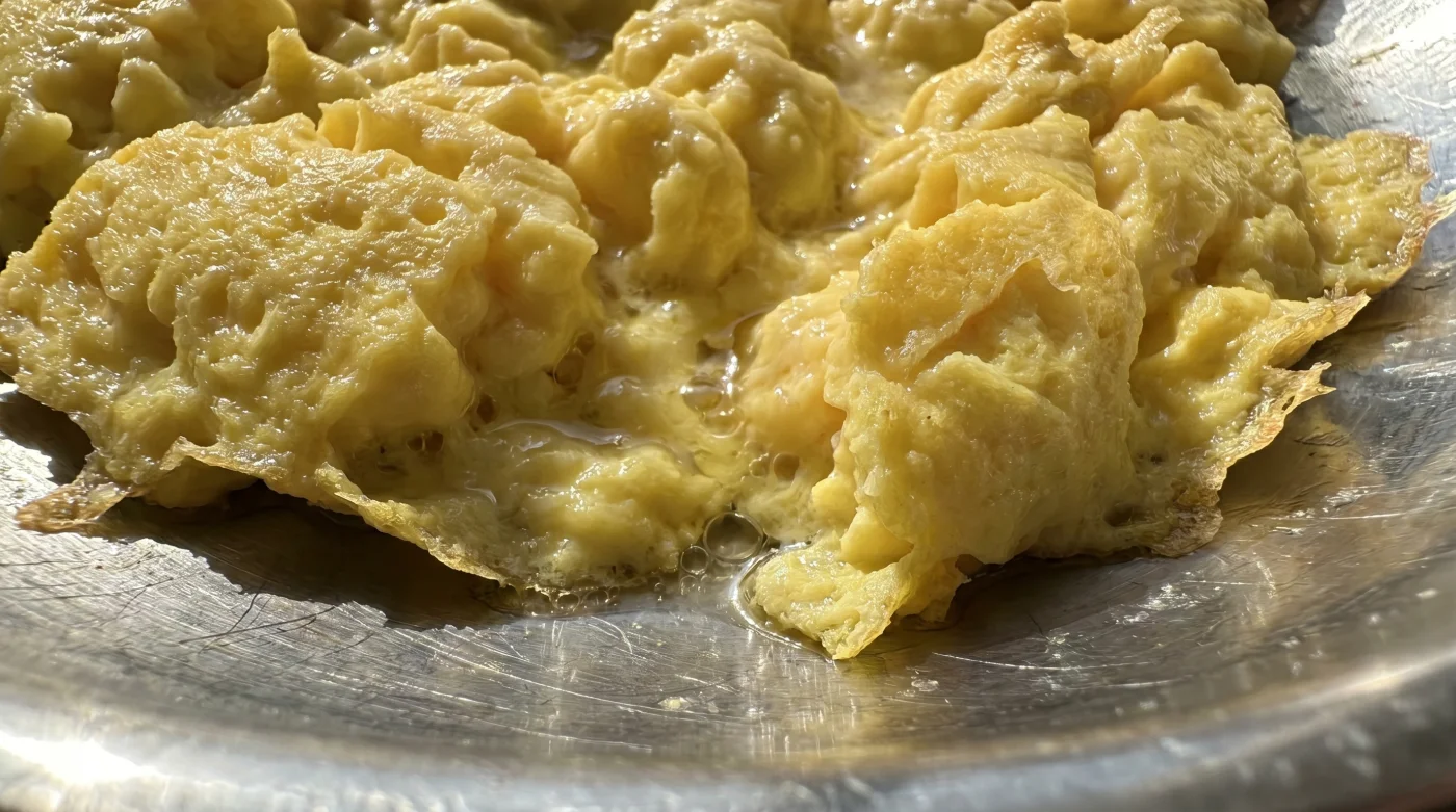 När värmen blir brutalt hög, tänk dig att drygt åttiofem grader Celsius träffar dessa mikroskopiska trådar direkt, drar trådarna omedelbart ihop sig i en krampaktig knut för att skydda sig. Vattnet, som tidigare hölls varsamt på plats i de små fickorna, pressas plötsligt och obönhörligt ut. Resultatet är exakt den där trista vattenpölen på tallriken. Du tvingas dränka eländet i extra salt eller stark sås för att det ens ska gå att svälja. Din frukost har inte blivit varsamt tillagad, den har blivit stressad till bristningsgränsen.