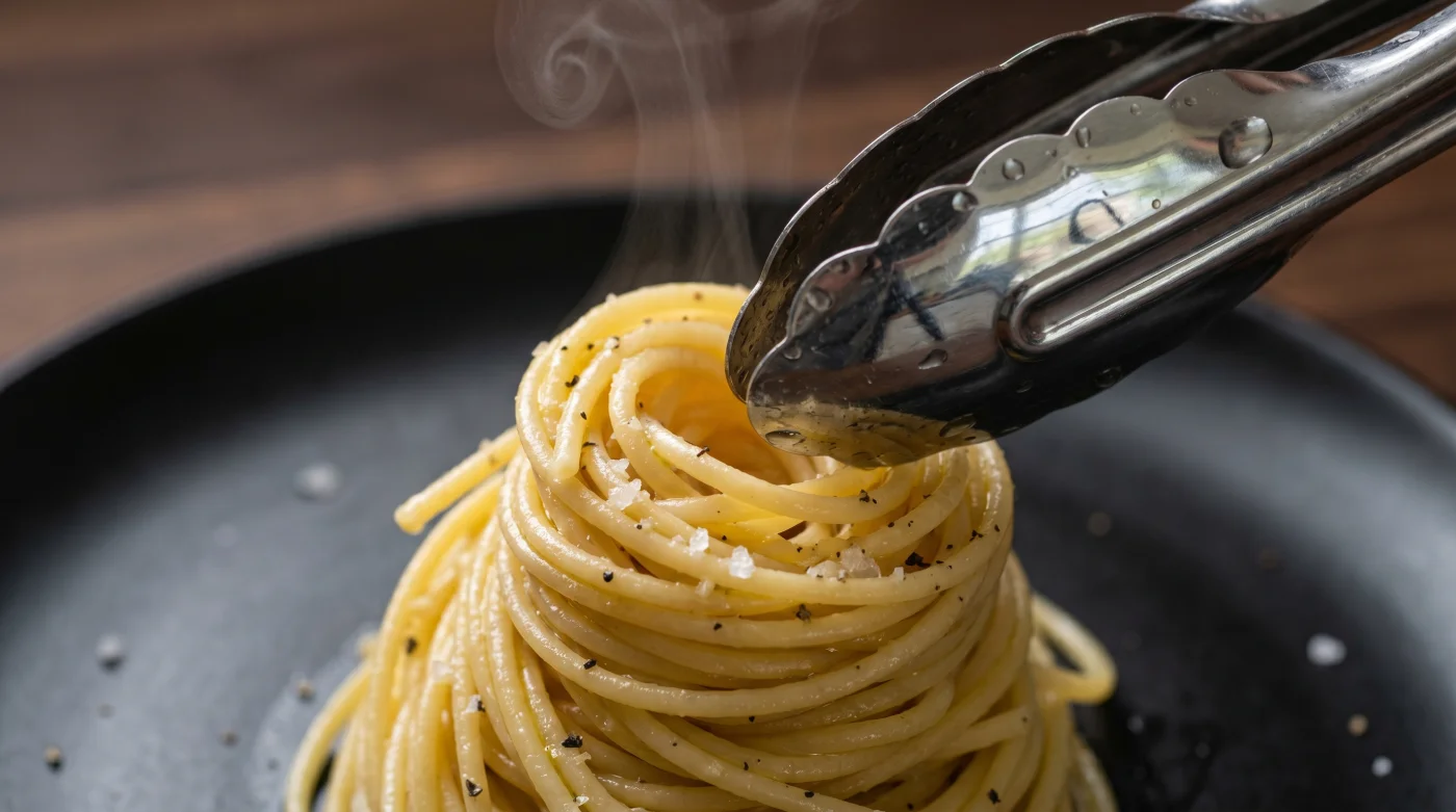 Marcus, 34, arbetar som saucier på en ständigt fullbokad kvarterskrog i Göteborg. Varje kväll skickar han ut över tvåhundra portioner pasta från sitt hörn av det trånga köket. Han brukar skaka lätt på huvudet åt hur hemmafixare förstör en perfekt balanserad cacio e pepe genom att låta den rinna ut platt som en blöt handduk. Hans arbetsredskap är inte magi, utan en trettio centimeter lång stekpincett som han använder för att nypa tag i pastan, pressa spetsen mot en soppslev och snurra med en fast handledsrörelse tills en spänstig cylinder tar form.